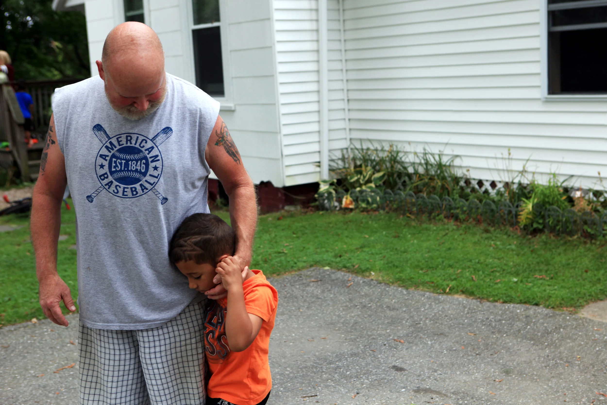 Grandfather and grandson in Claremont, N.H.